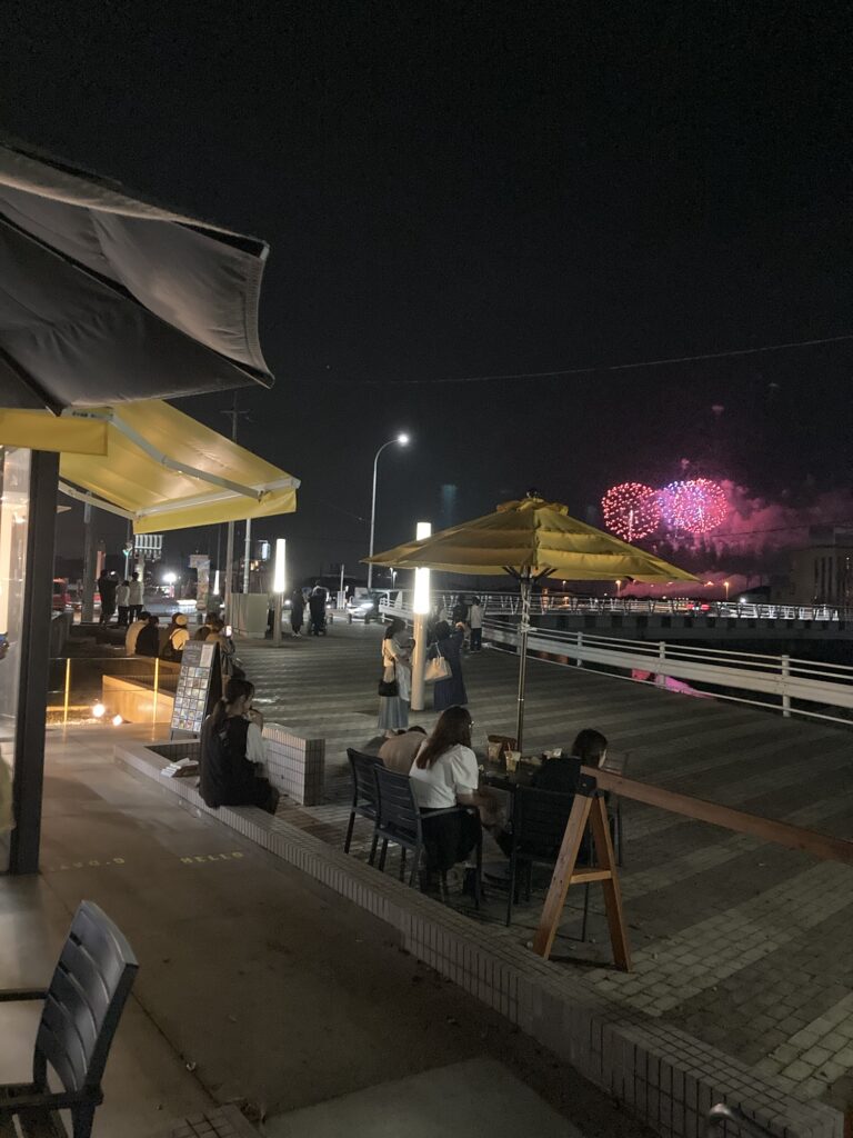 実は、花火がニーハチテラス前広場からよく見えるので、