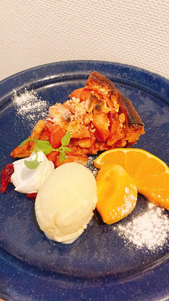 サクザククランブルをのせて、リベイクして、バニラアイスを添えて。