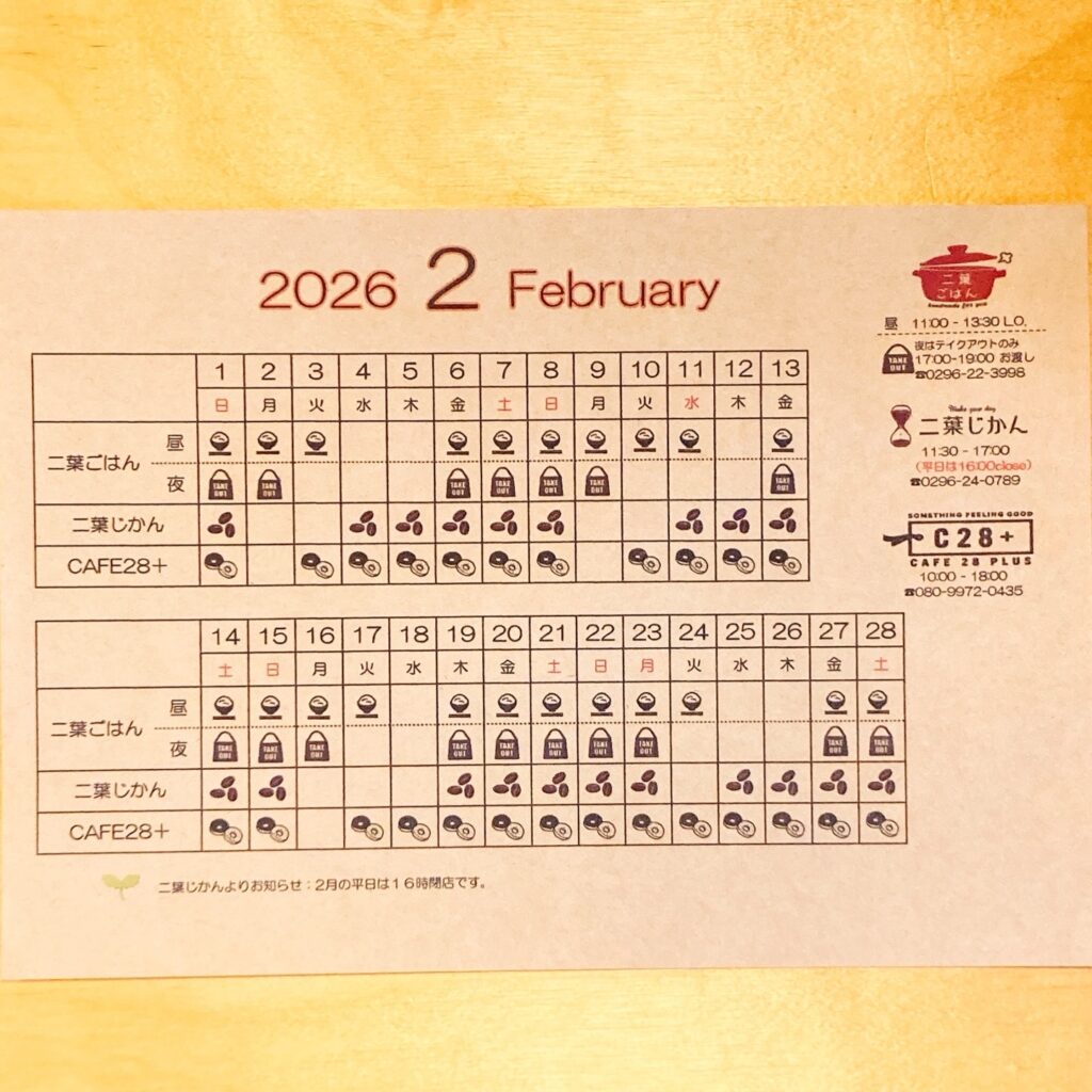 2月スケジュール 投稿日 2026年2月4日 著者 マスター カテゴリー お知らせ 2月営業案内お待たせしました。参考になさってください。 チョコレートに夢中になるシーズンです。昨年、とっても評判が良かった自家製オランジェット、ニーハチで絶賛仕込み中です。 販売スタートしましたら報告いたしますね。 乾燥がきついこの時期、体温めて、自分に甘々で過ごしてくださいね。 この記事を書いた人 マスター 記事一覧